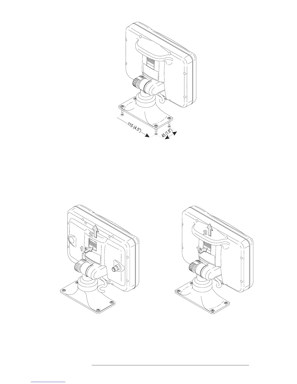 To remove the chartplotter press the bracket button (1) as indicated in the