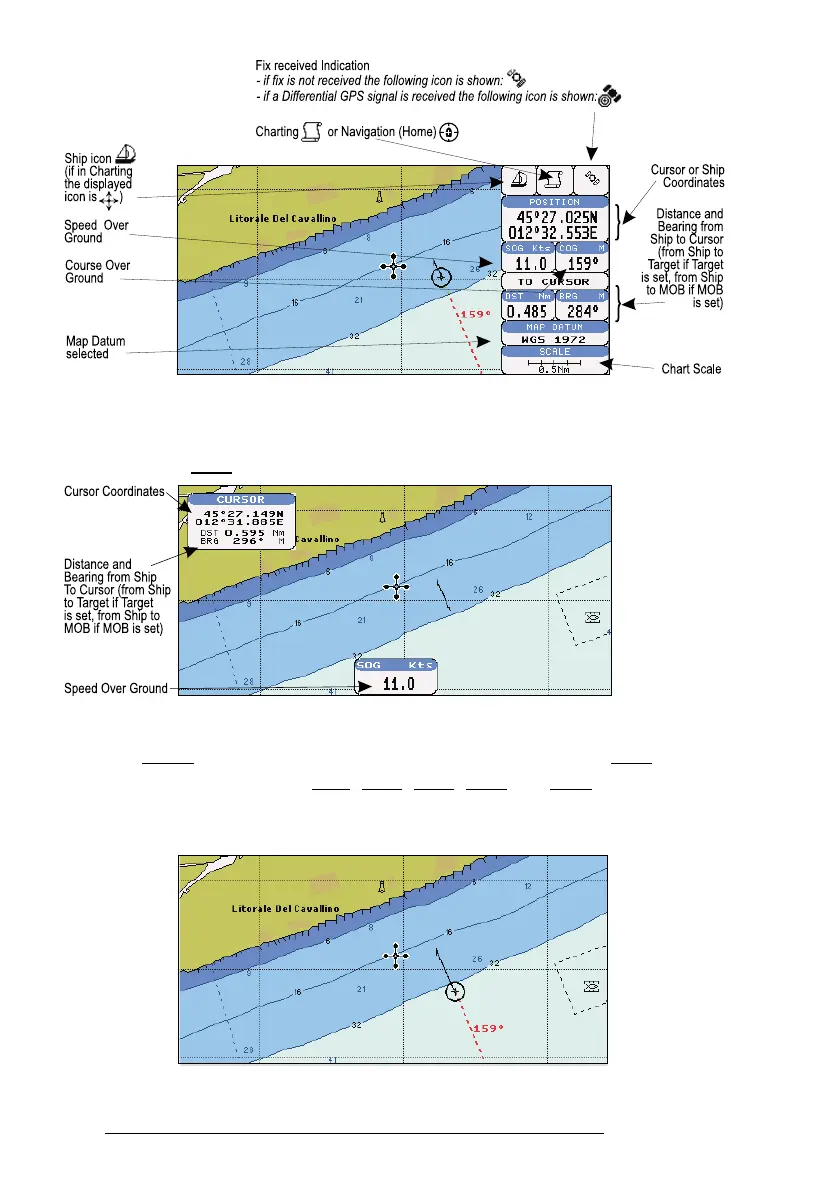 tion window, a text line with DST, BRG, XTE, SOG and TTG information ap-