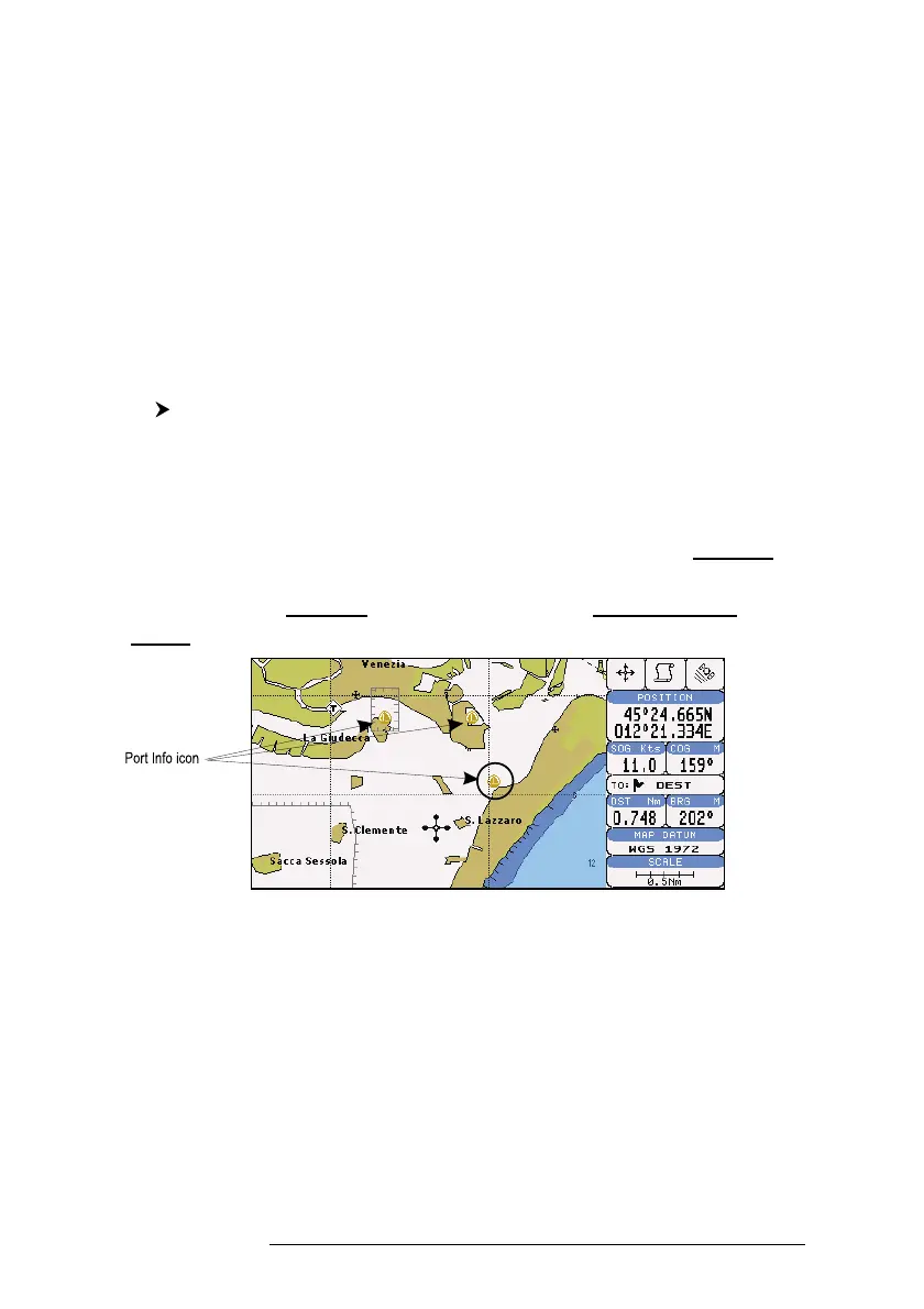 Upon viewing the chart of a port or harbor, you will see a Port Info icon that