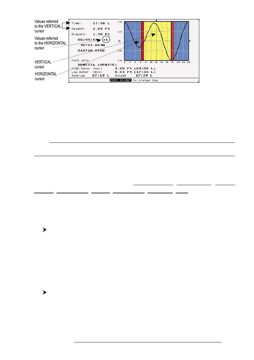 graph and display the time, height (vertical cursor) and draught (horizontal cursor)