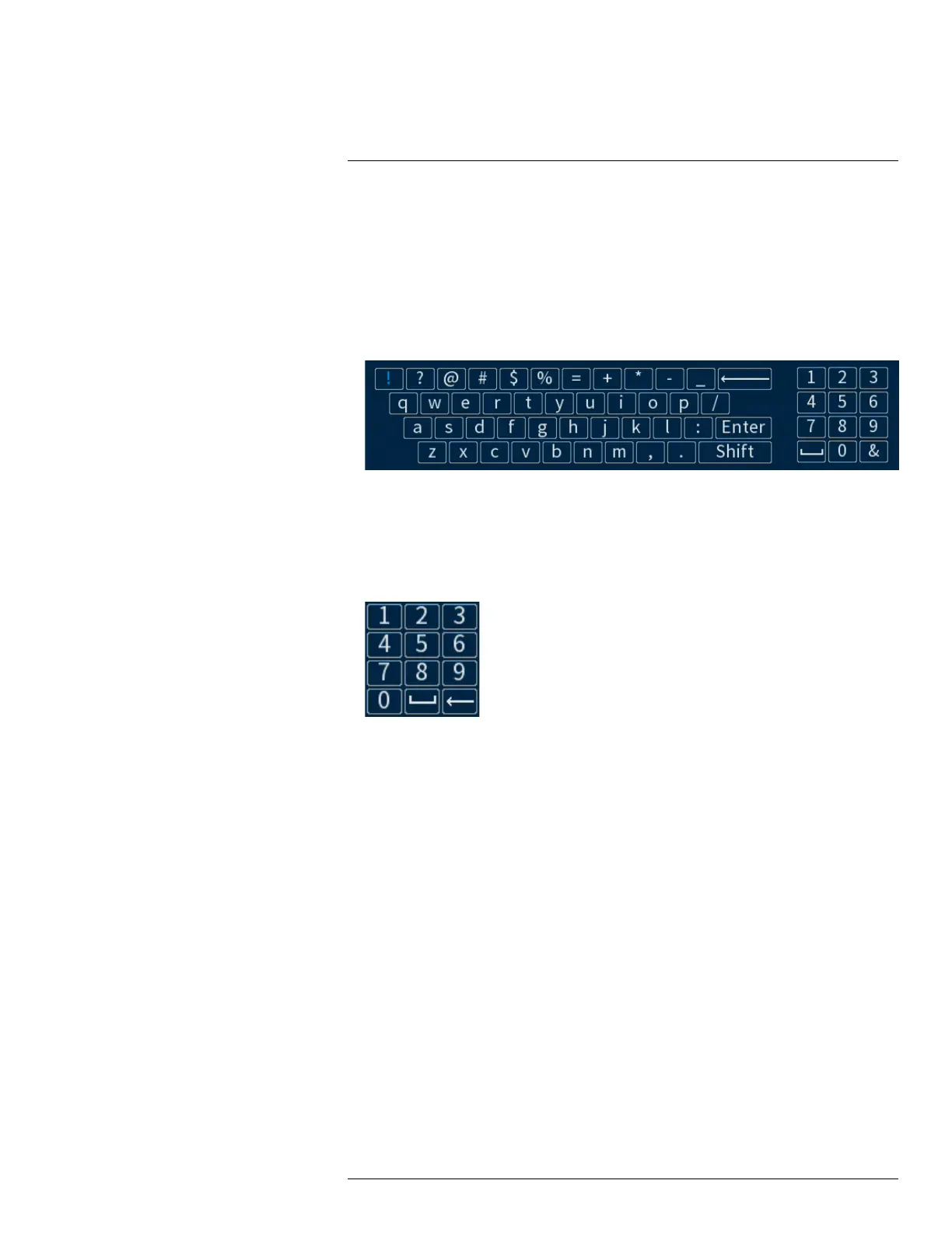 The Full Keypad is used to input alphanumeric characters, such as in user name or password