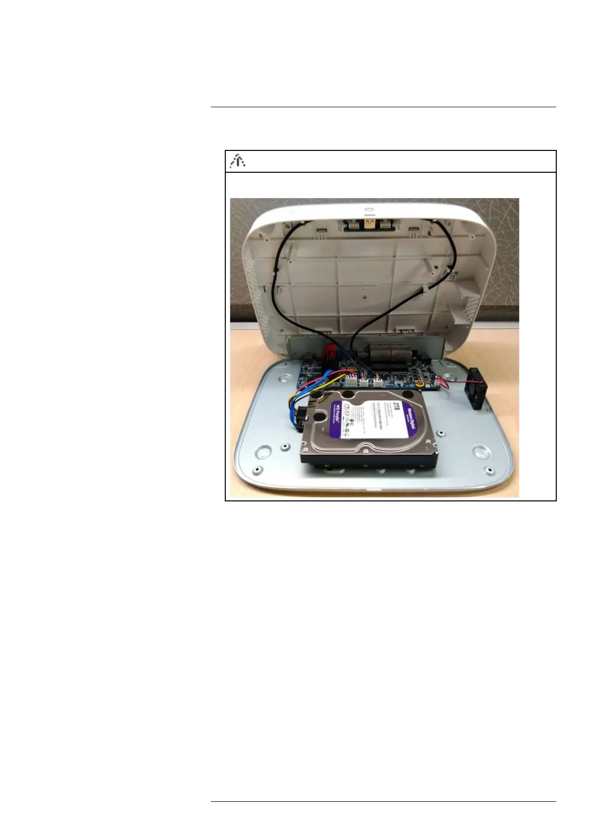 The wiring to the front panel button and USB port runs along the top panel of the recorder. When separating