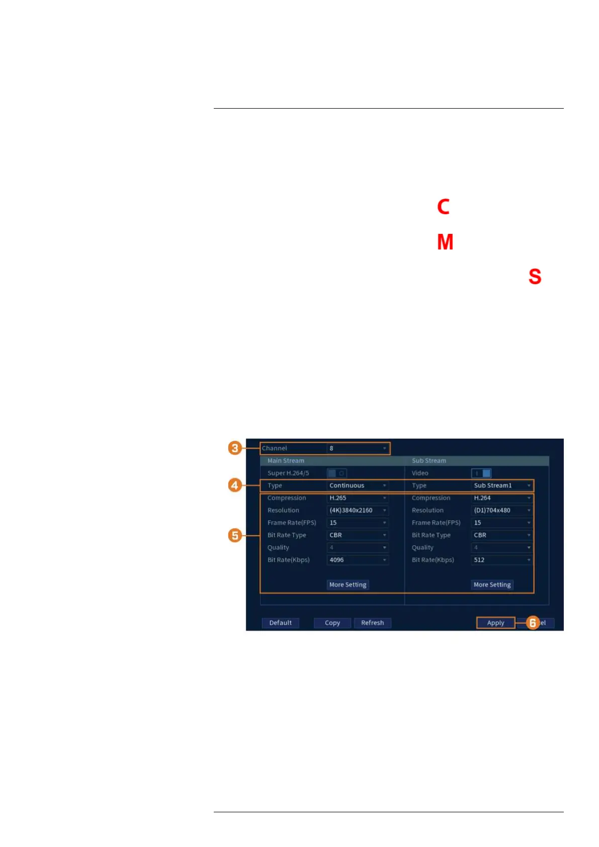 The system uses two video recording streams: a Main Stream and a Sub Stream. The Main