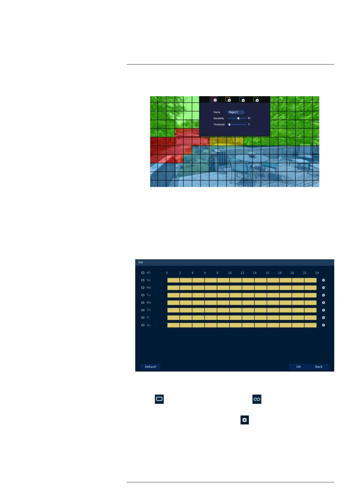 5. Click Set next to Region to configure which areas of the image will be enabled for motion