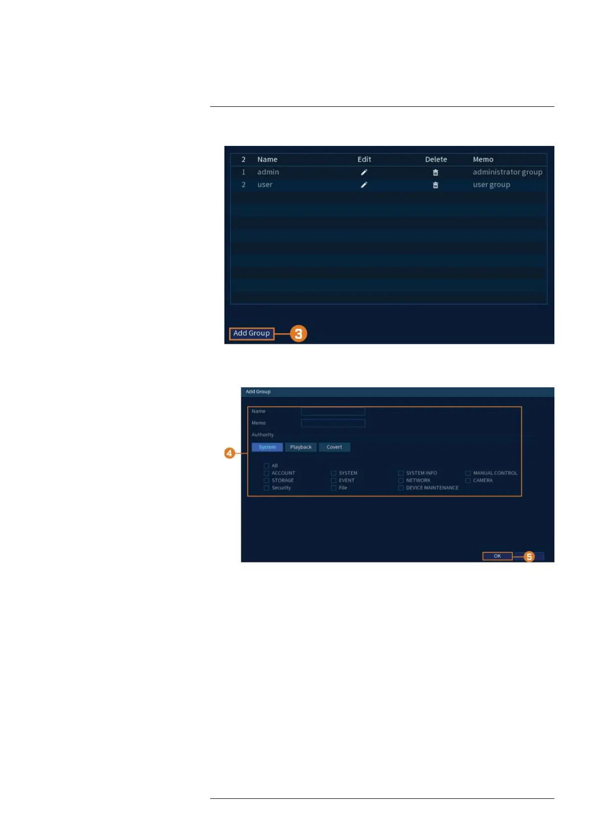 System tab, select the menus the user account may access. Under the Playback tab, select