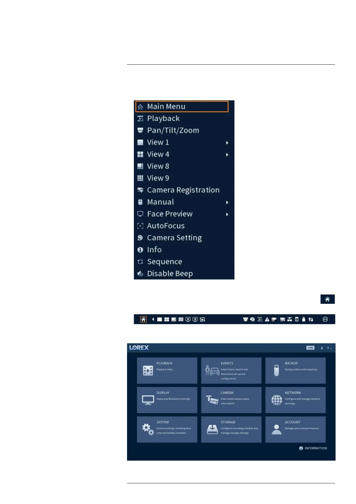 Lorex N4K2-86BB - Using the Main Menu; Main Menu Overview