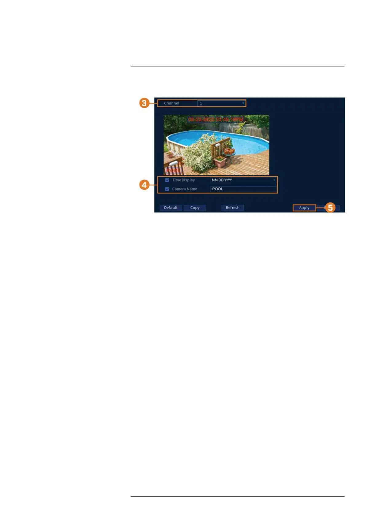 • Channel Name: Check to display the channel name. Enter the camera’s name and click