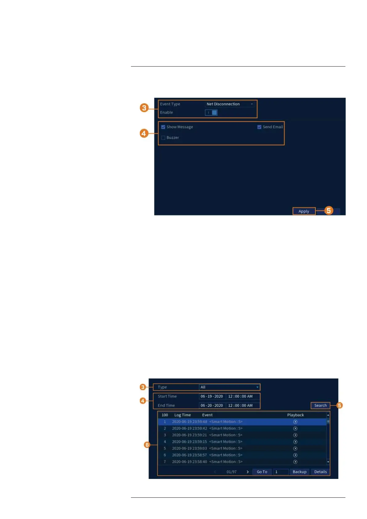 Search all channels for events, including motion detection and video loss.