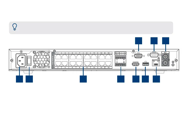 La NVR de 16 canales que se muestra en esta guía es solo ilustrativa. Su grabadora puede ser