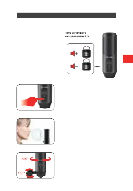 на микрофона на 360° хоризонтално.