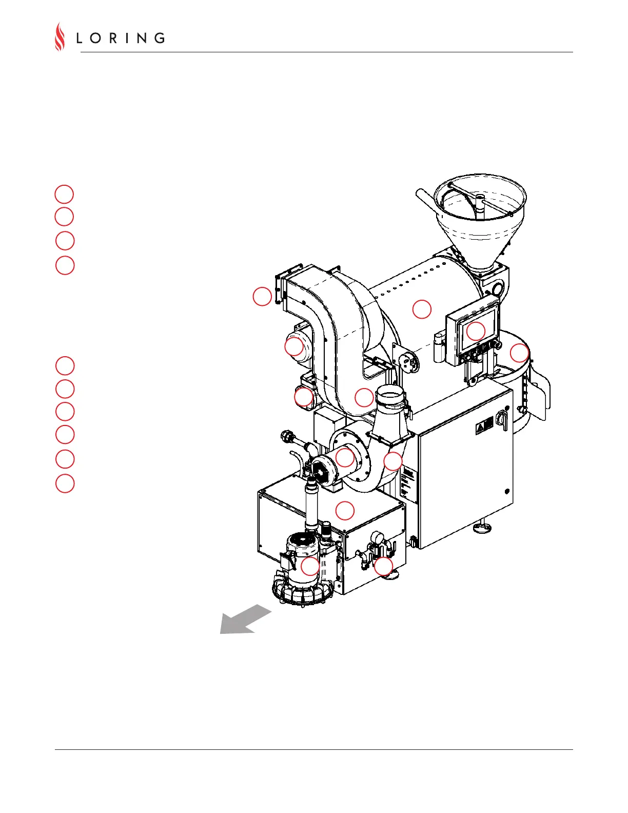 Some roaster components are more easily visible prior to equipment assembly – mainly, various