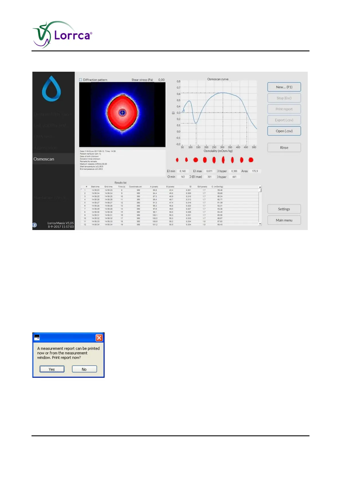 At measurement completion measurement results are displayed on-screen, the software offers an
