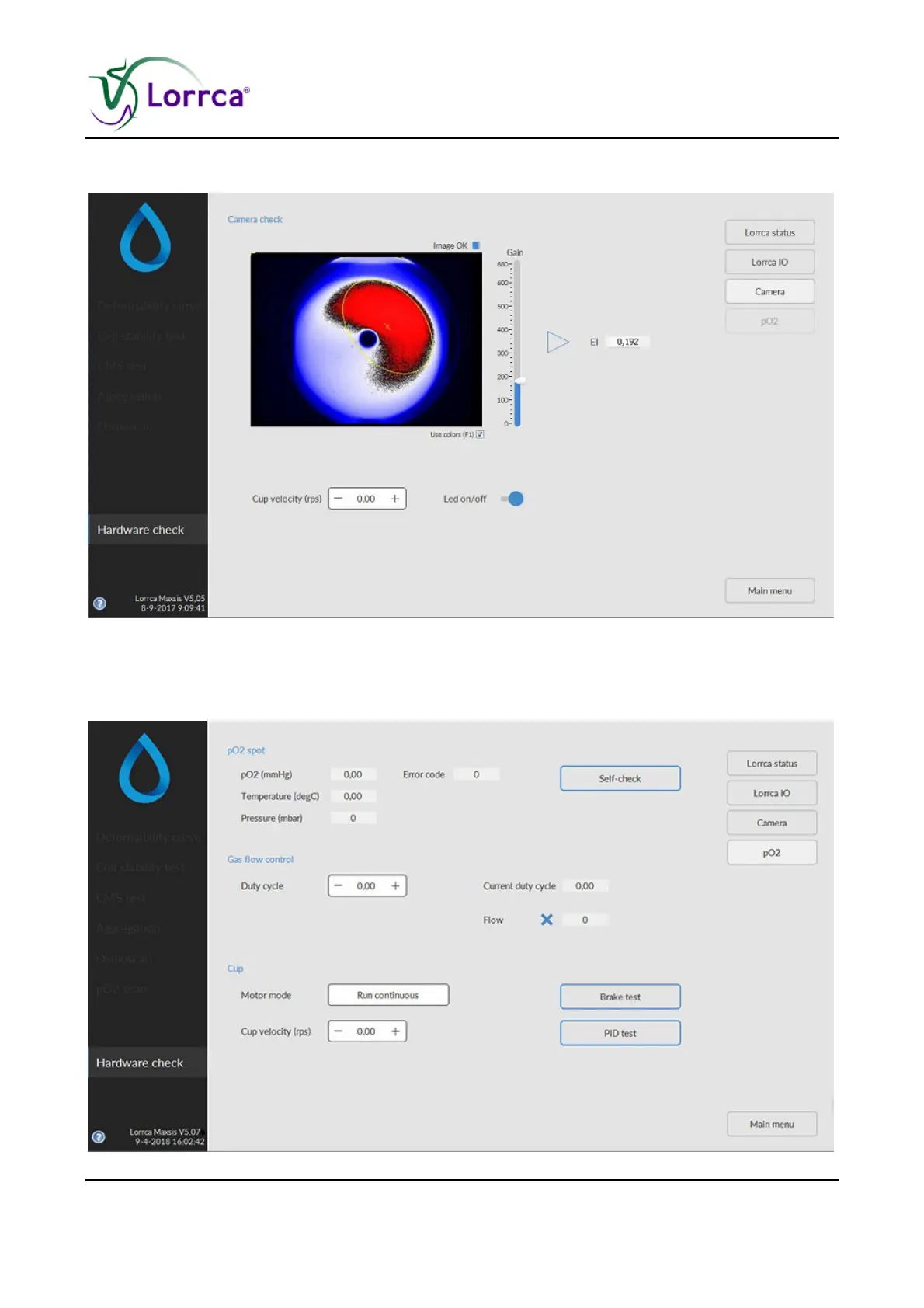 Lorrca MaxSis - Hardware Check Camera Led on Screen; Hardware Po2