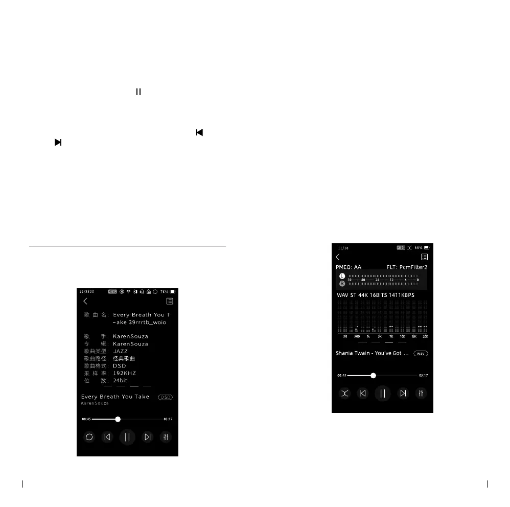 点击歌曲名称进入播放界面,在播放界面中,左右滑动