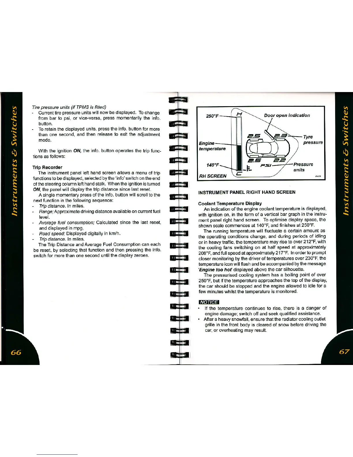 left hand screen allows a menu of trip