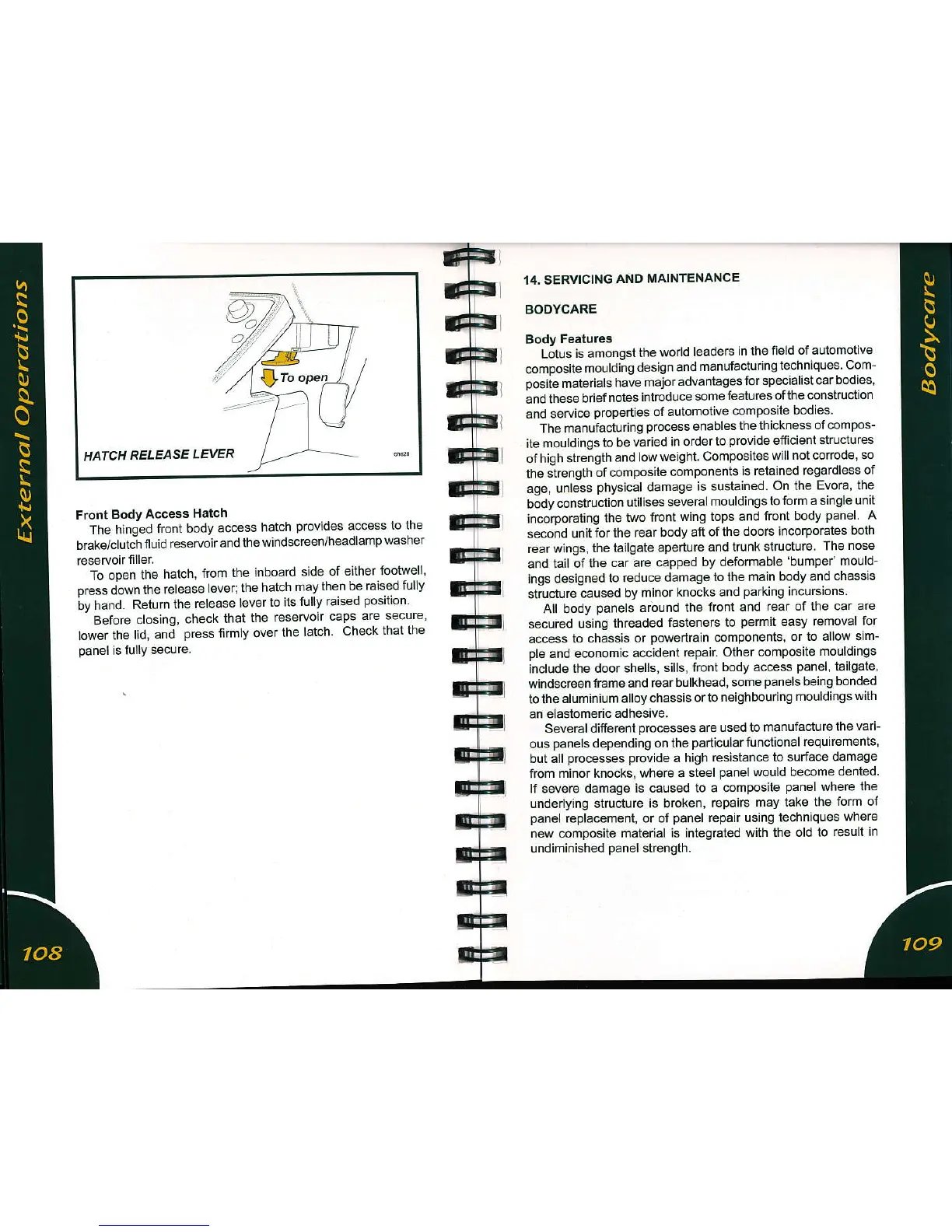 Lotus Evora 2010 - Servicing and Maintenance; Bodycare; Front Body Access Hatch; Body Features