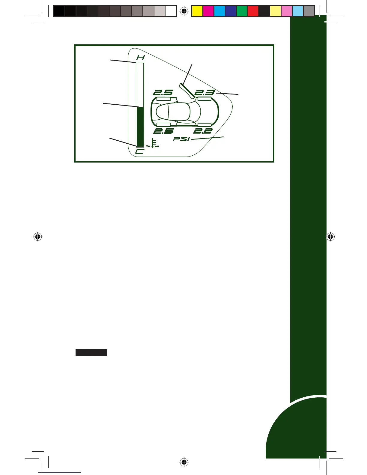 An indication of the engine coolant temperature is displayed,