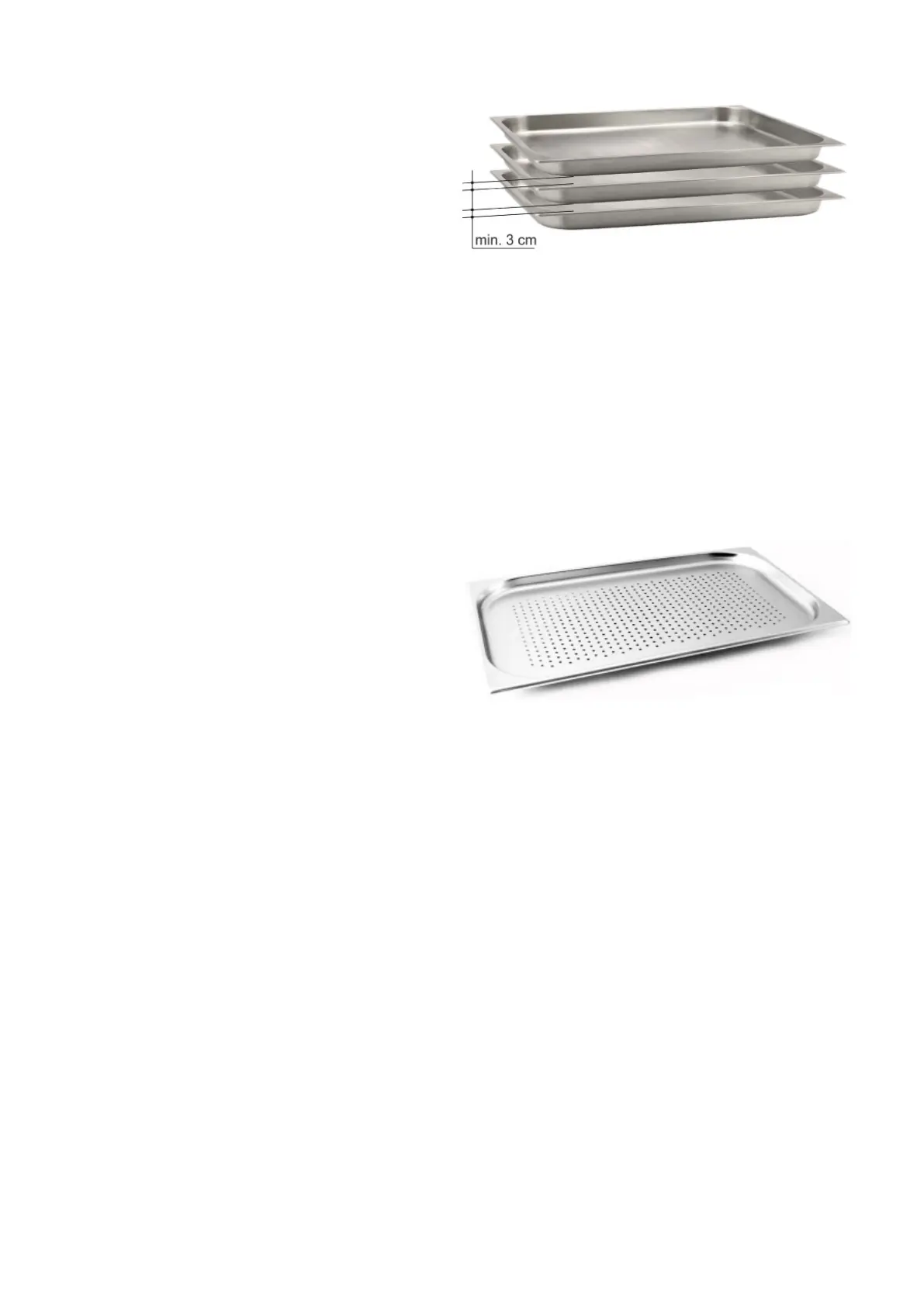 Es wird empfohlen, immer einen durchlochten GN-Behälter zu verwenden, damit sich am Boden kein Wasser