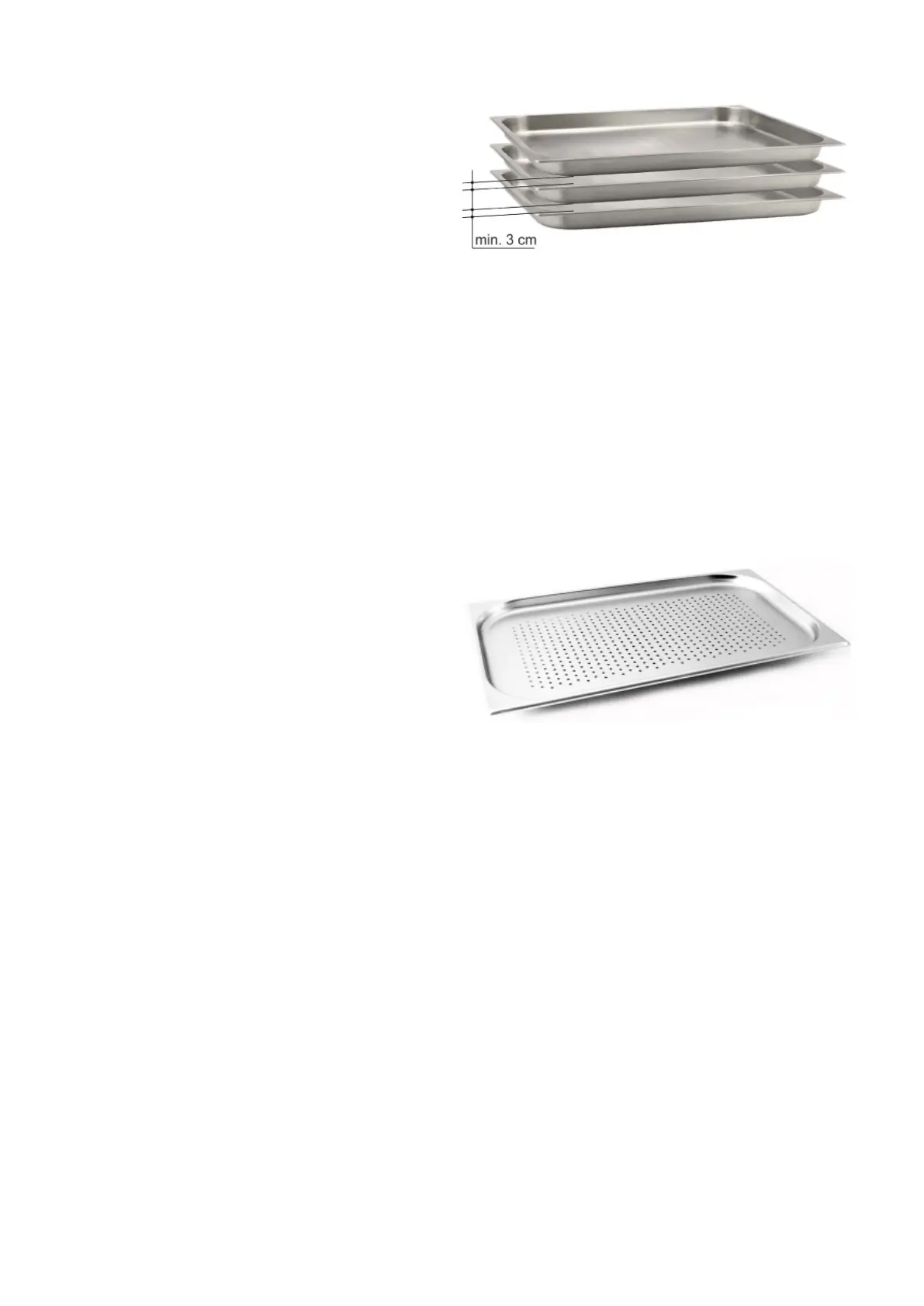 We raden aan om altijd gebruik te maken van een gastronorm bakplaat die geperforeerd is om ervoor te zorgen