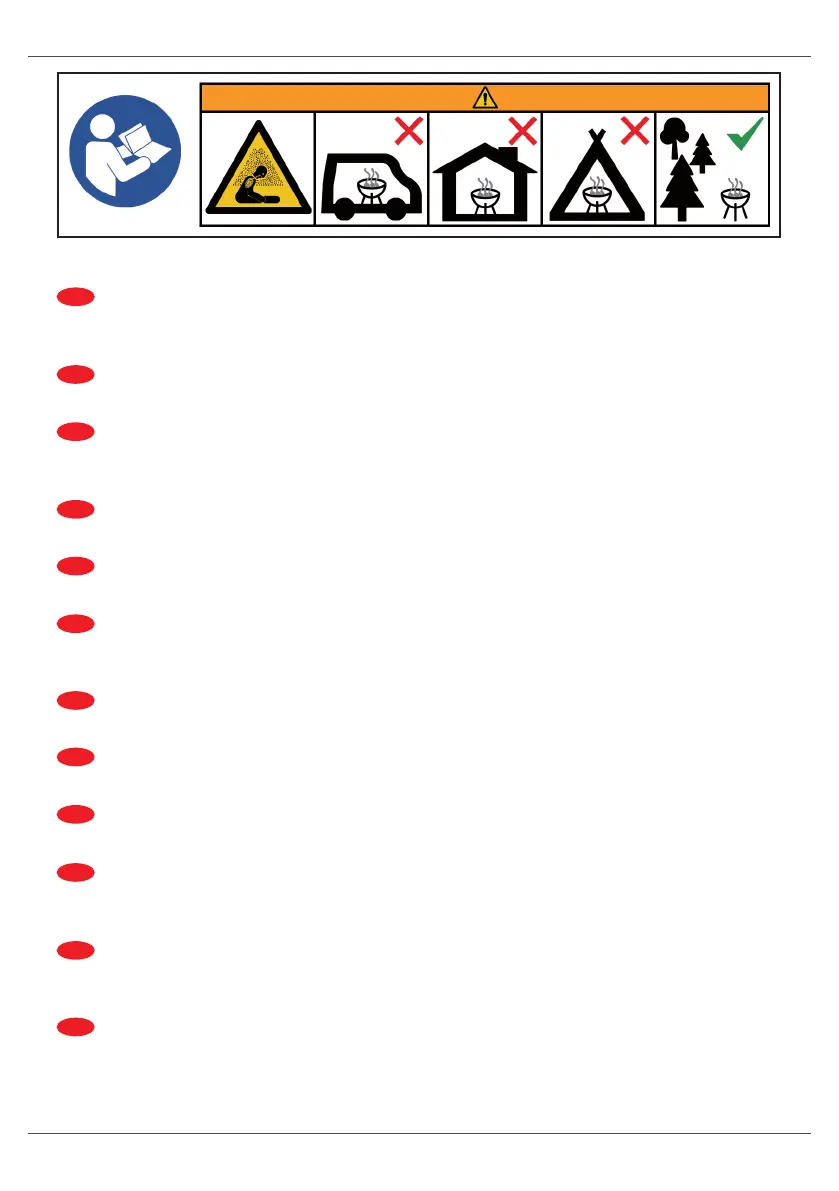 Do not use the barbecue in a conned and / or habitable space e.g. houses, tents, caravans,
