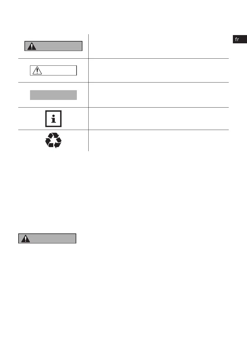 Les symboles et mentions d'avertissement suivants sont utilisés dans le présent mode d'emploi.