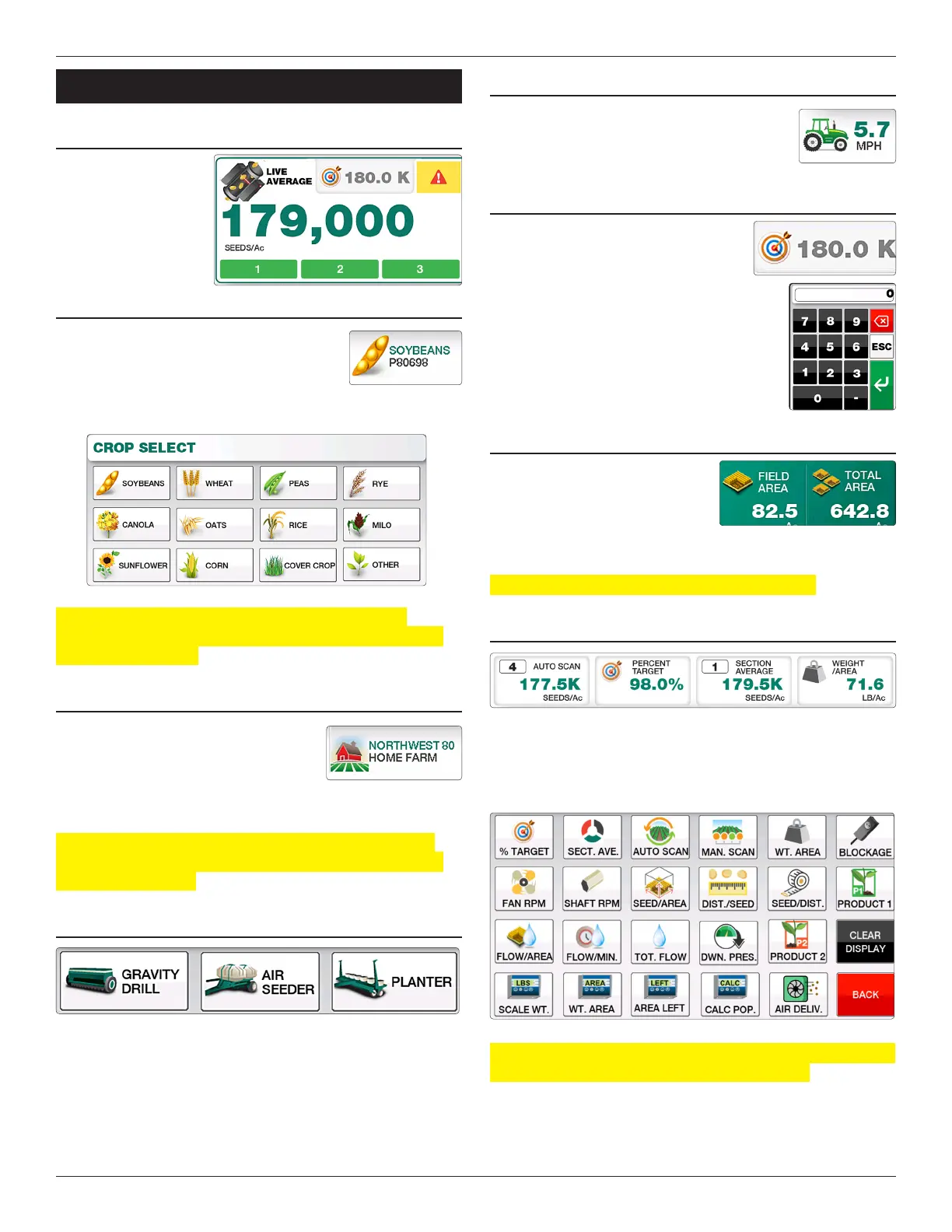 Selecting the Implement from the Main screen will bring you