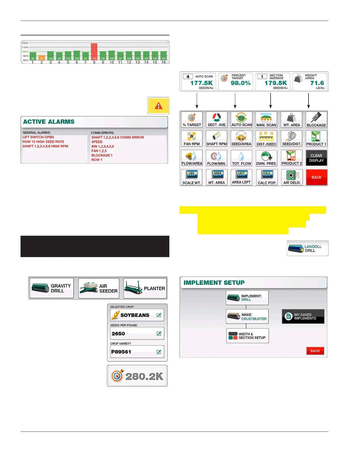 section widths. Up to three separate implements can be saved.