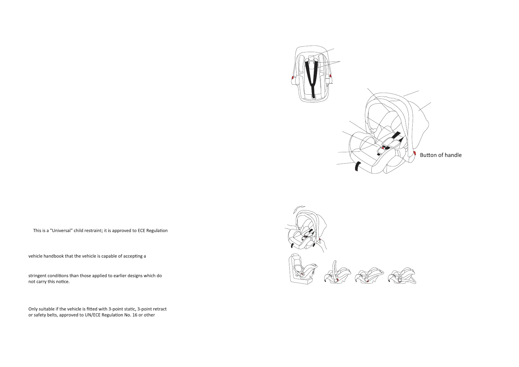 Always ensure that the baby is secured with the safety harness and that the handle is in a locked posion.