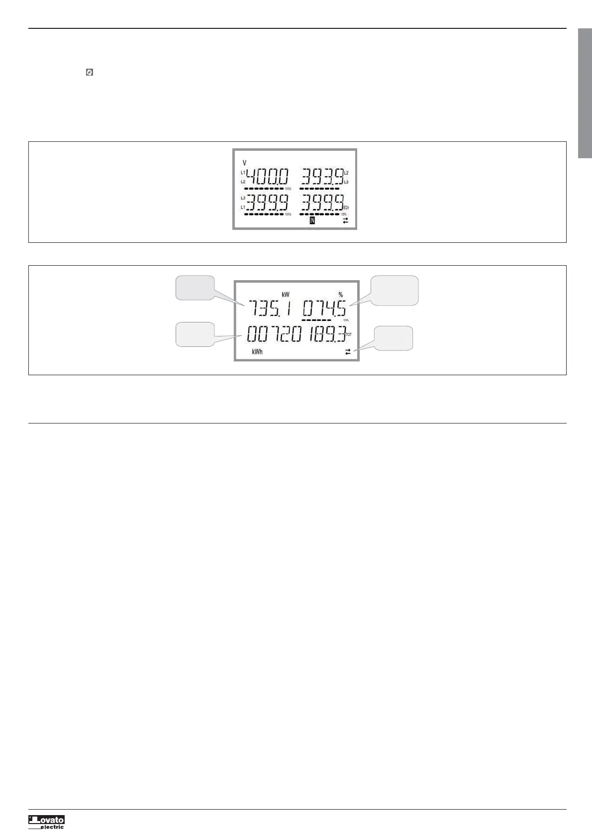 – It is also possible to program the energy meter so that the display always remains that which was last selected.