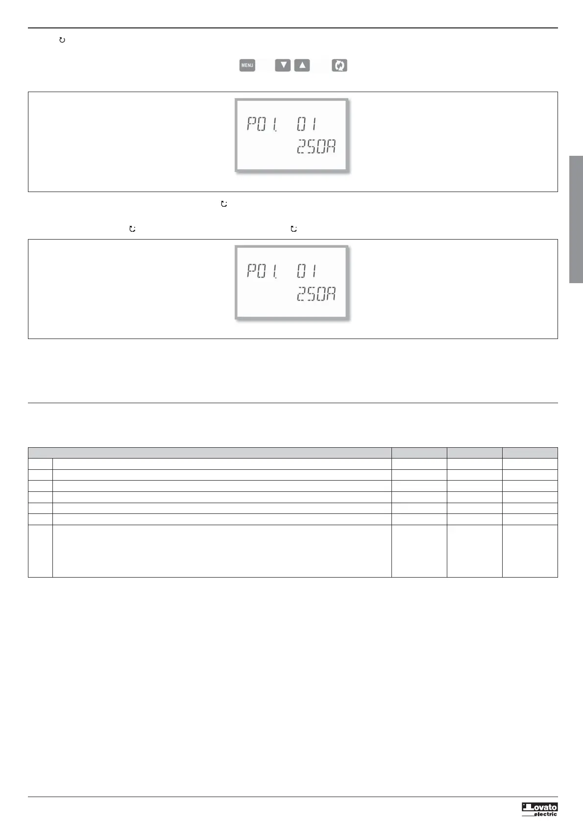 della funzionalità del parametro. La descrizione del parametro visibile sul display può in qualche caso differire da quanto riportato in tabella a causa del ridotto numero di caratteri disponibile. Il codice del
