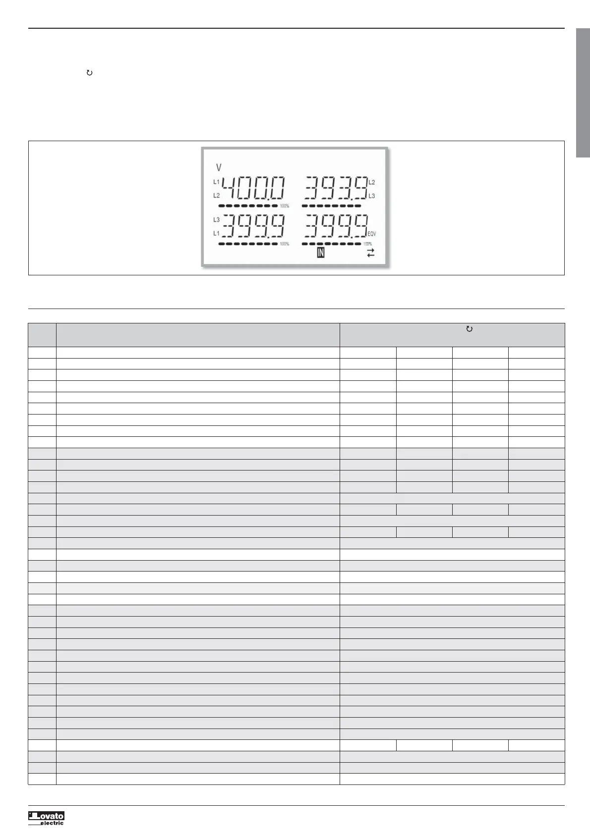 – Some measurements may not be displayed, depending on the programming and the connection for the device (for example, if programmed for a system without neutral, the measurements relating to neutral are