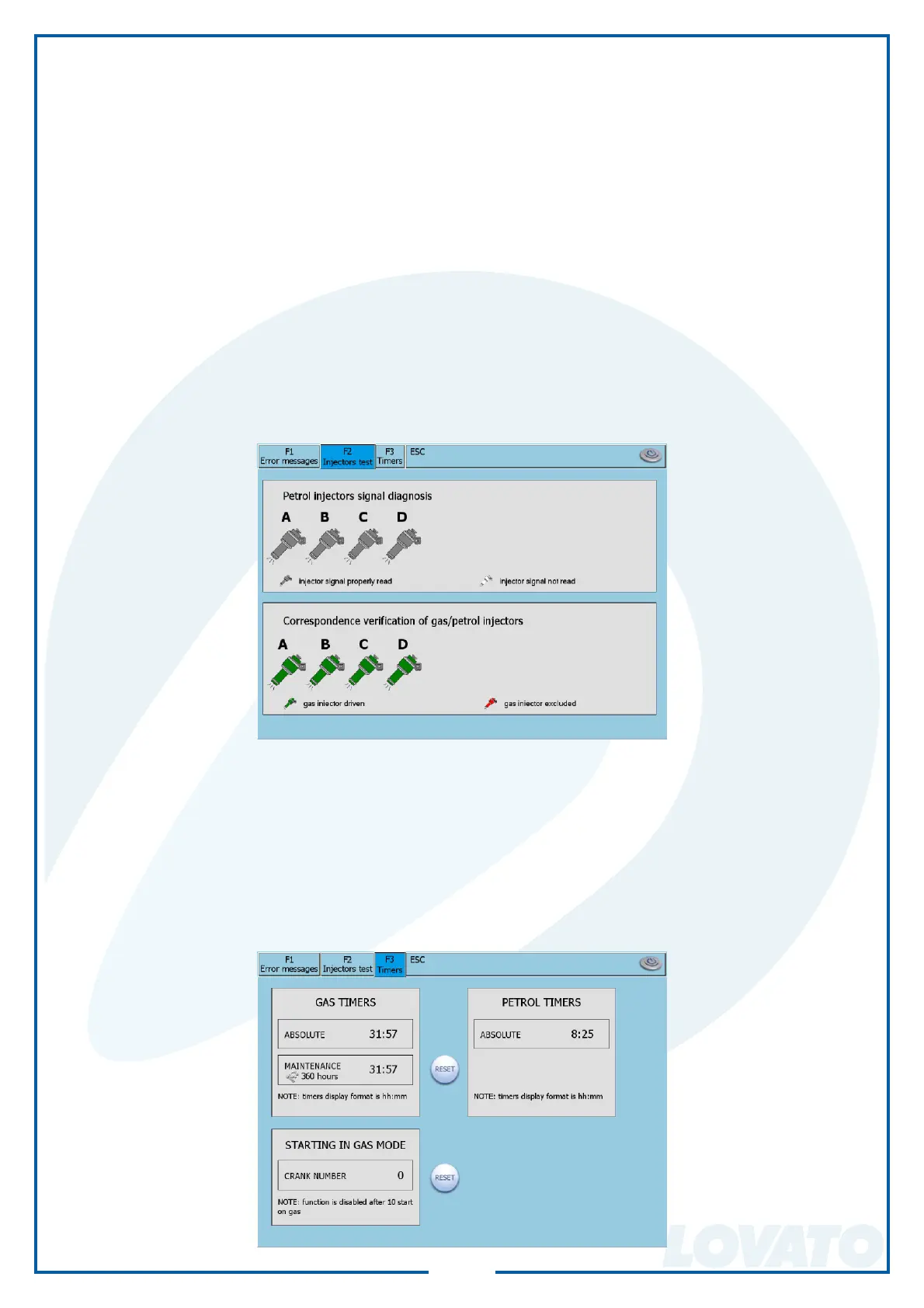 Verifi cation of gas /petrol injectors correspondance – When the car is gas powered, you