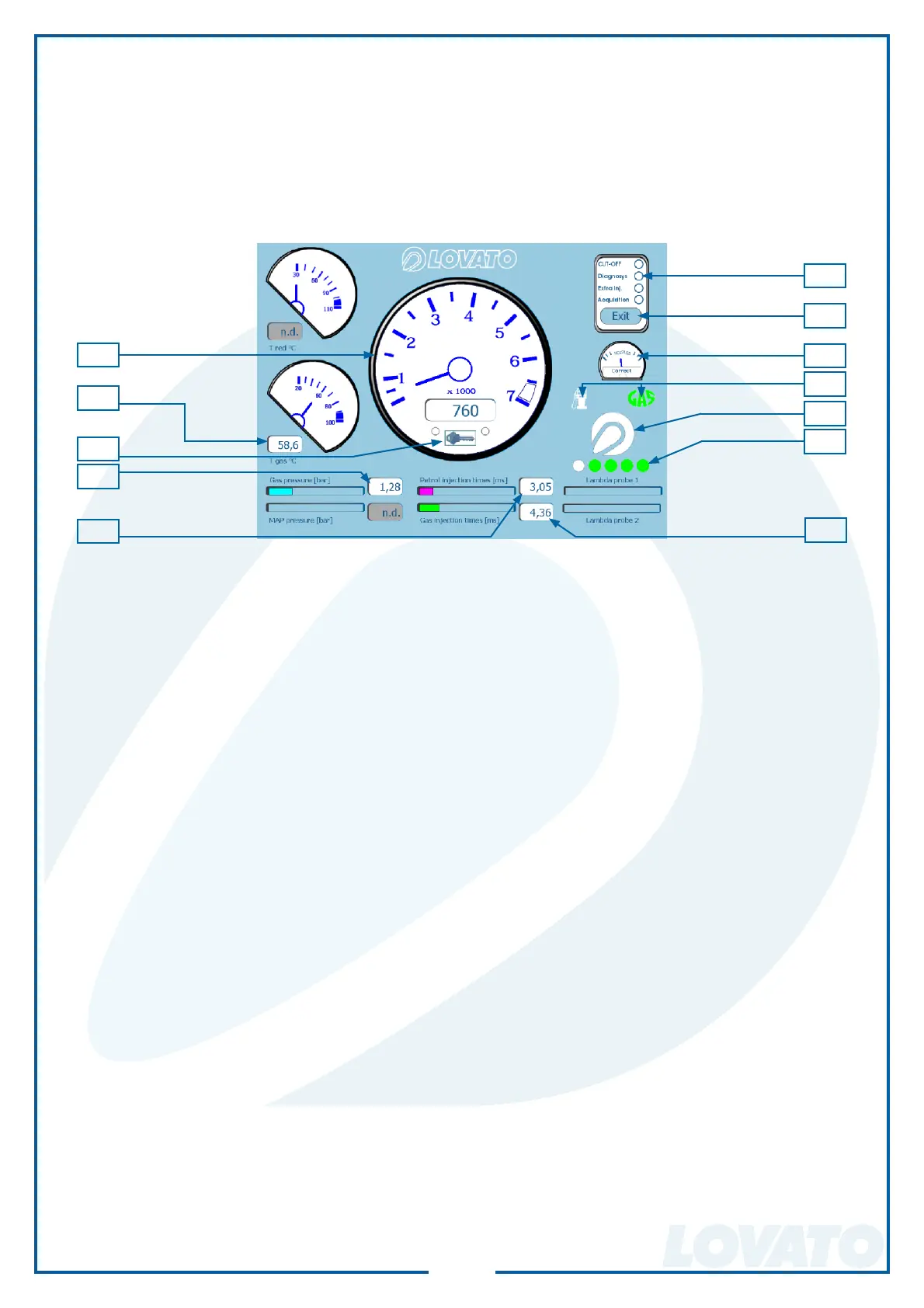 10) This supplies a visual indication on some operation statuses of the car and of the plant with gas