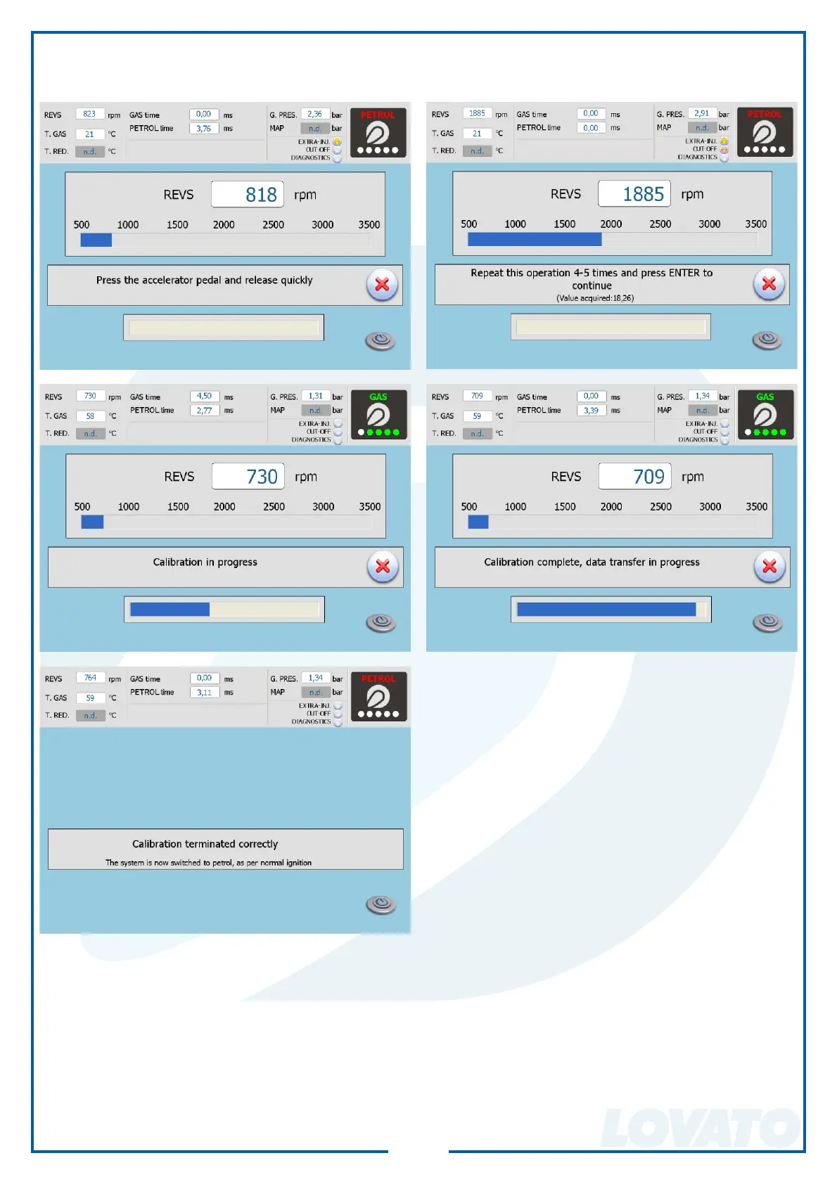 During the self-calibration, the car is brought to gas feeding automatically and the slider gives an indi-