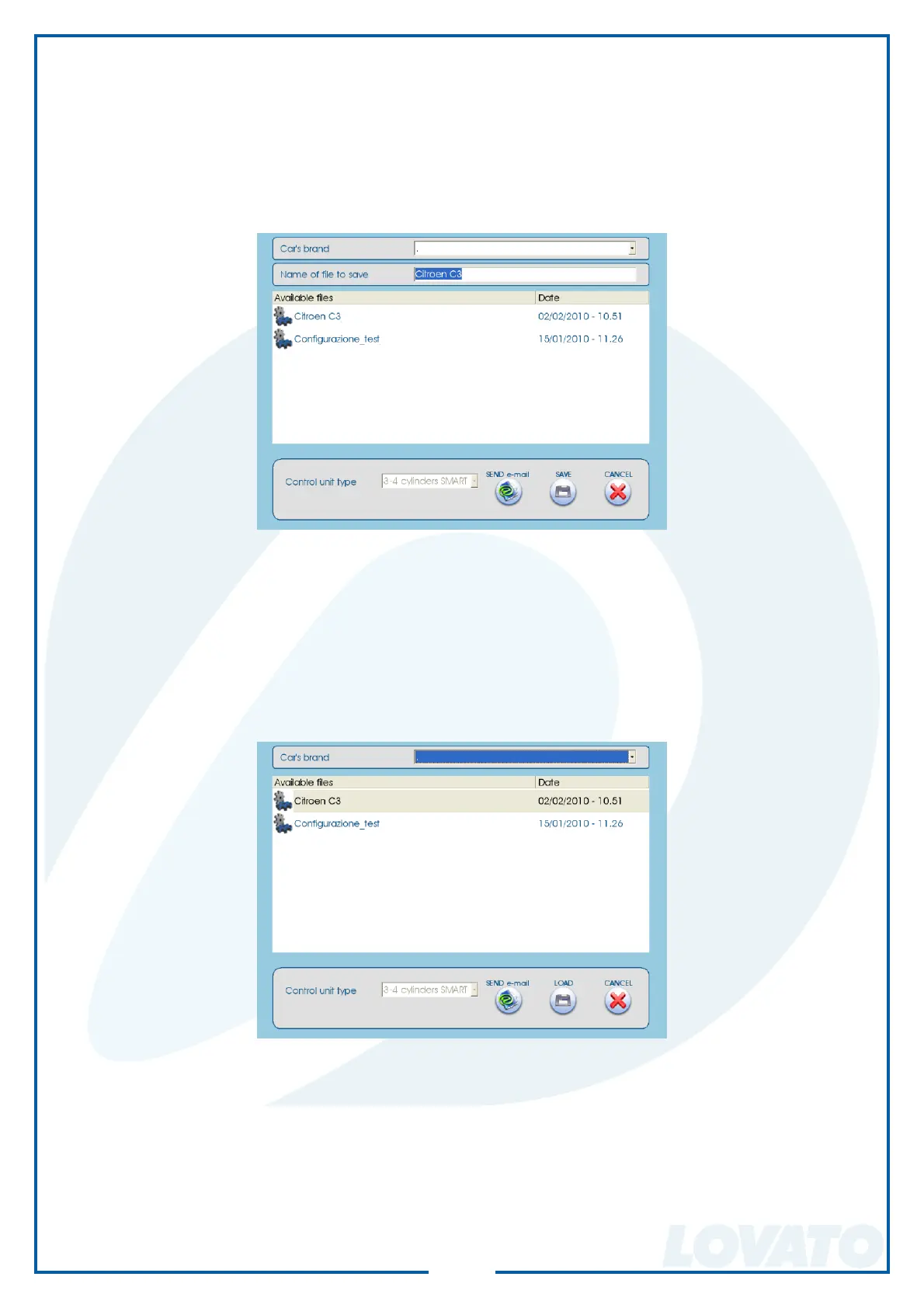 The confi guration fi les are contained in two separate folders: one for LPG confi gurations and the other