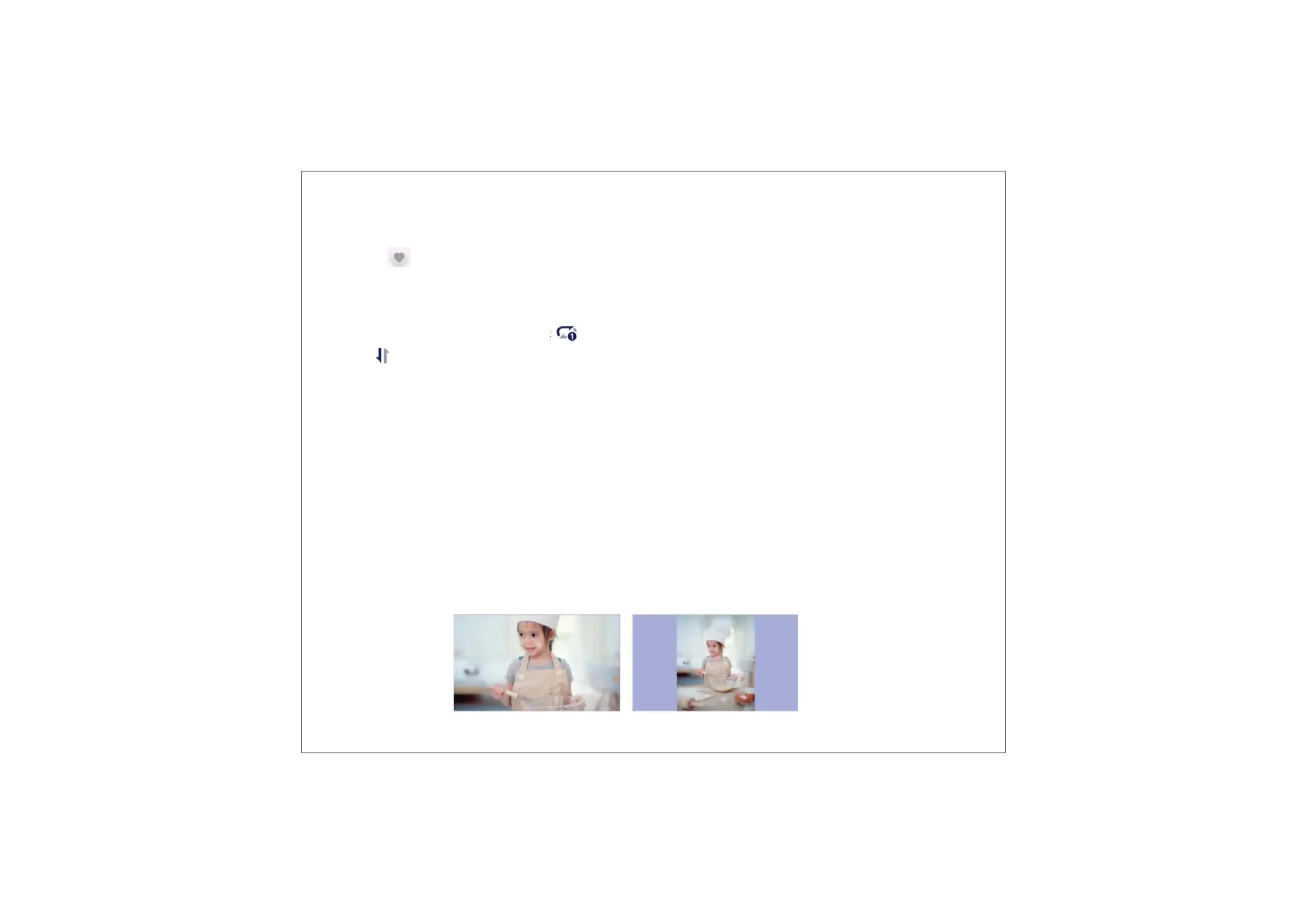 Fill frame: It is the default display mode. The photo is scaled proportionally to fit the entire frame.