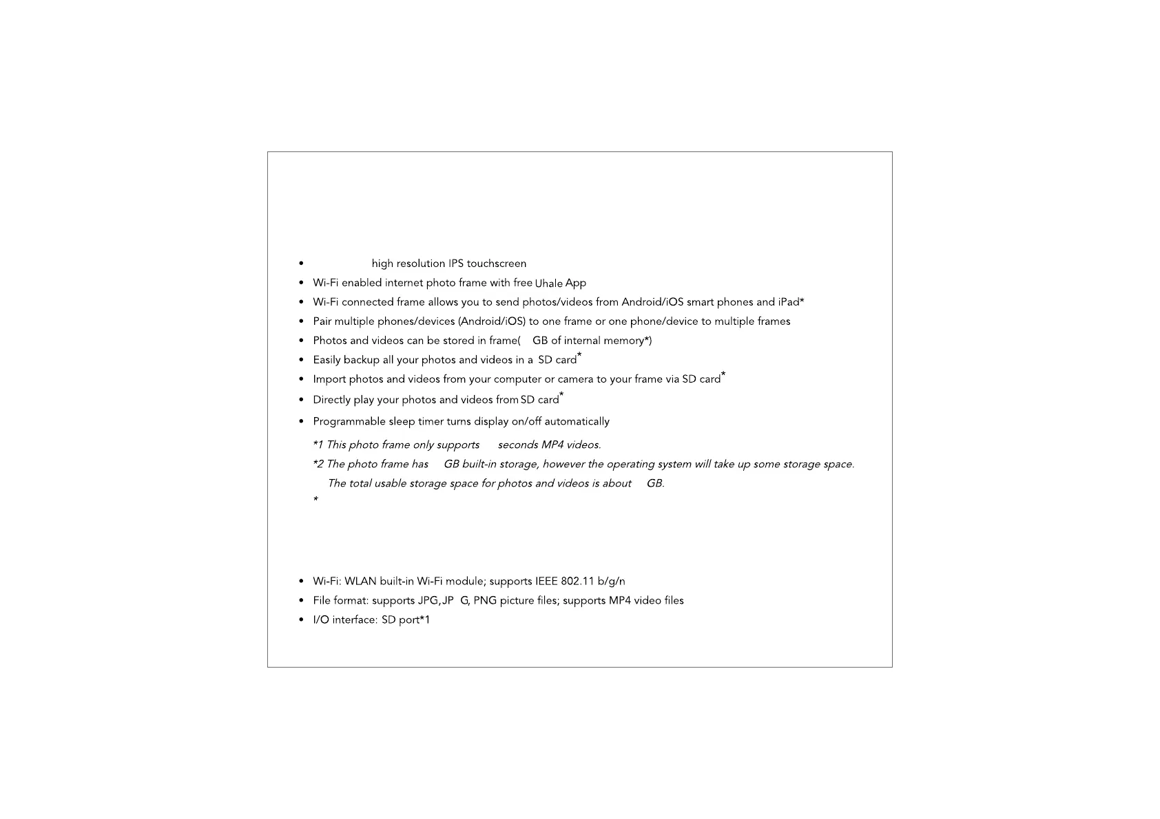 Lovfeel F156 - Get to Know Your Digital Picture Frame; Product Features; Product Specs