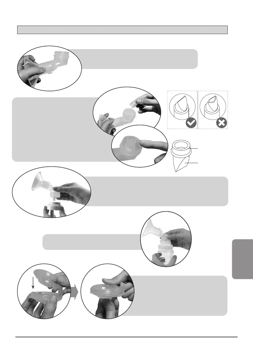 Opatrne otočte adaptér na fľašu k prsnému puzdru a bezpečne uchyťte.