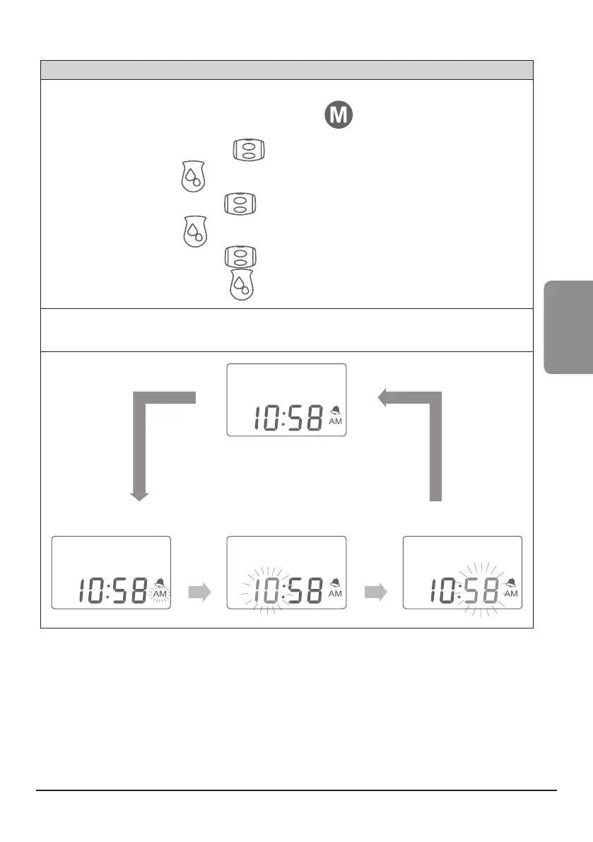 , které umožní změnu minut na hodinách. Číslice začnou blikat.