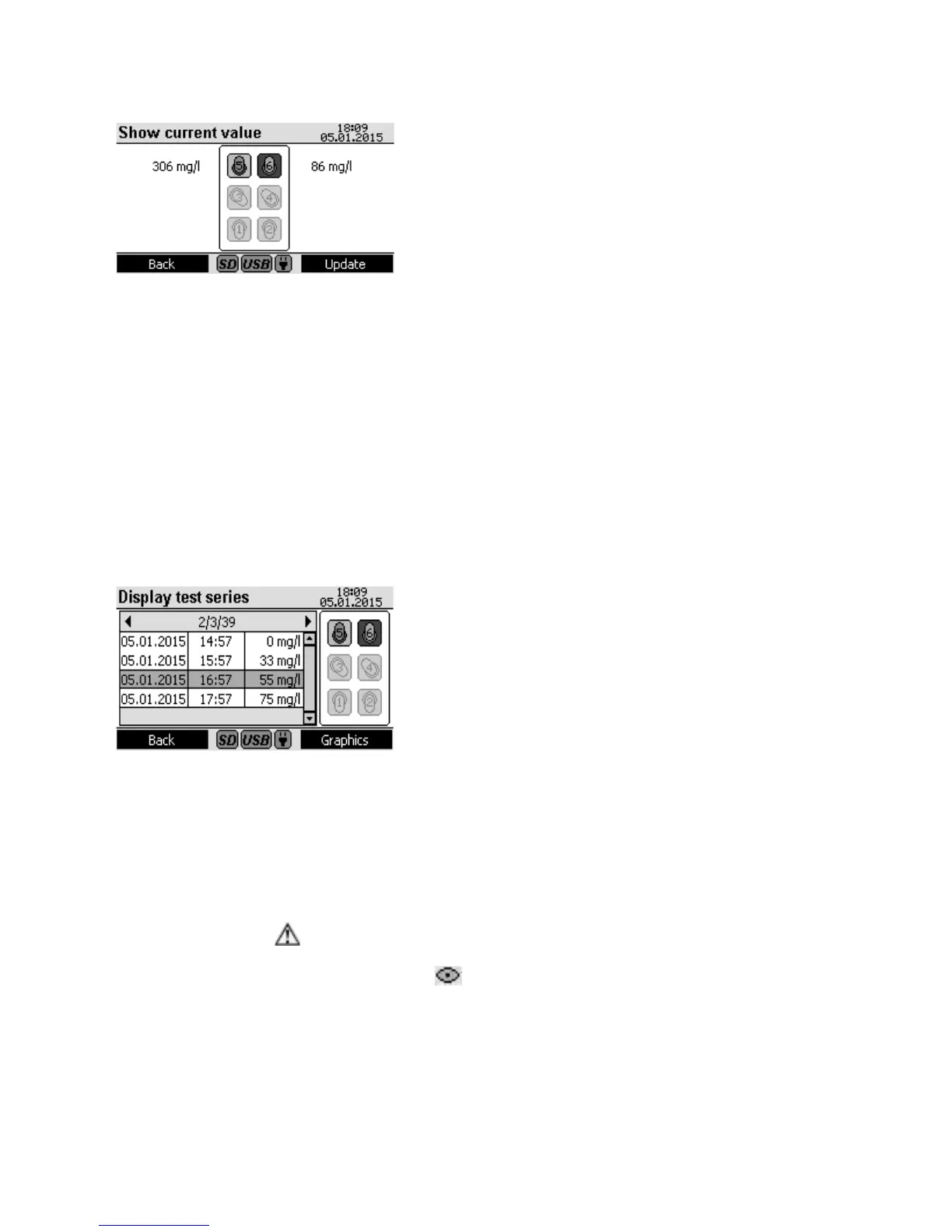 has not been conducted yet. The eye symbol indicates that no usable measurement value was