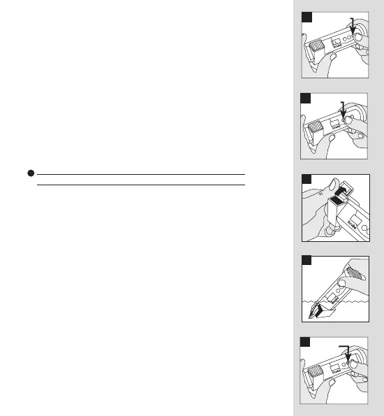 lätt i vattnet med enheten. När provkammaren har sköljts