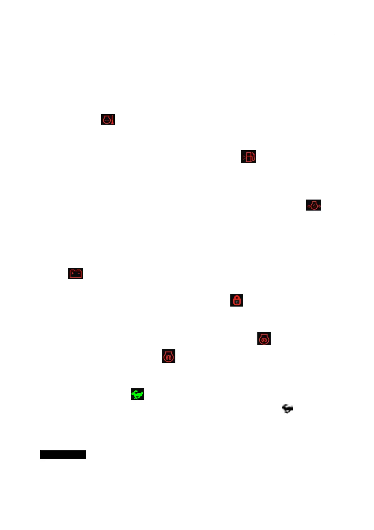 In the process of engine running, when abnormal lubrication system occurs, the buzzer will sound (0.5