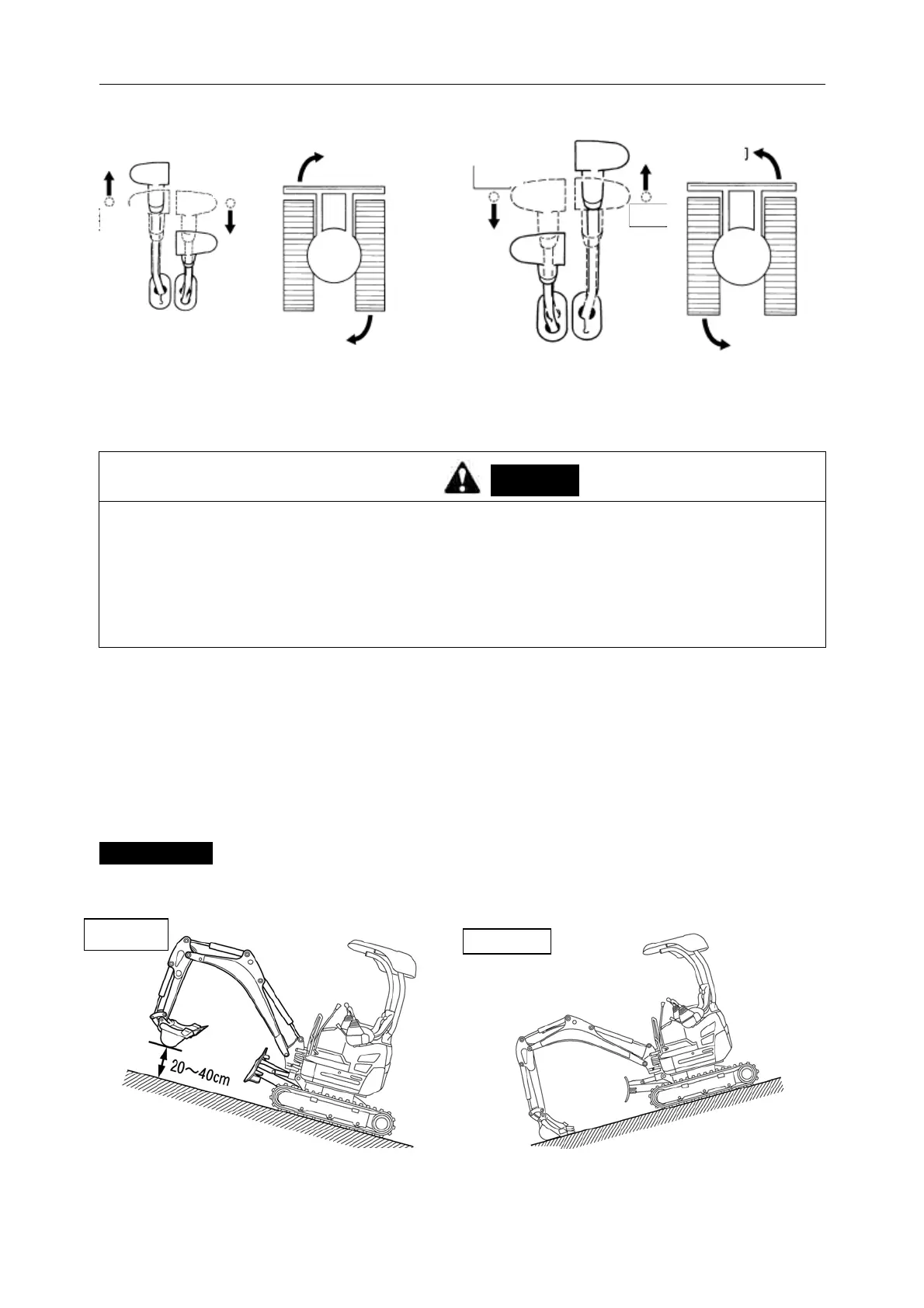 1. When going uphill, lift t he bucket and keep the bottom of the bucket 20 ~ 40cm off the ground before