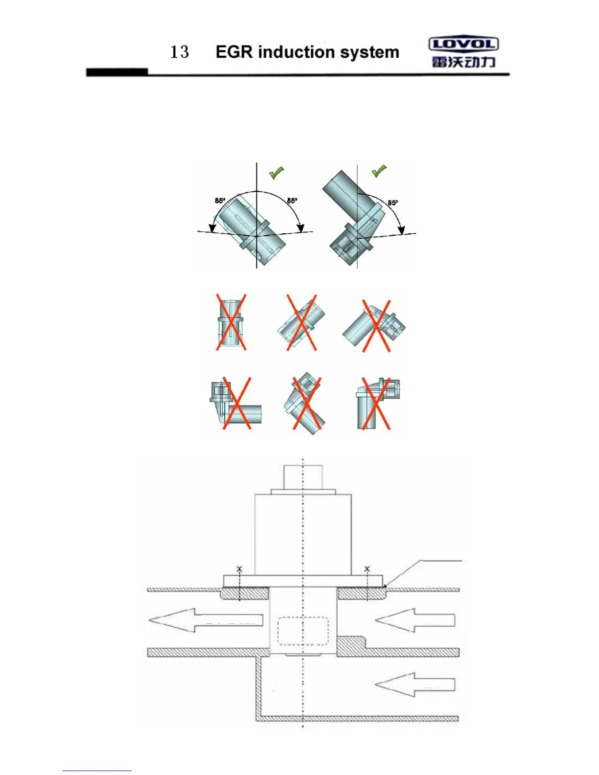 In order to avoid water accumulation in valve inside EGR, the direction of the inlet of the inner valve of valve must