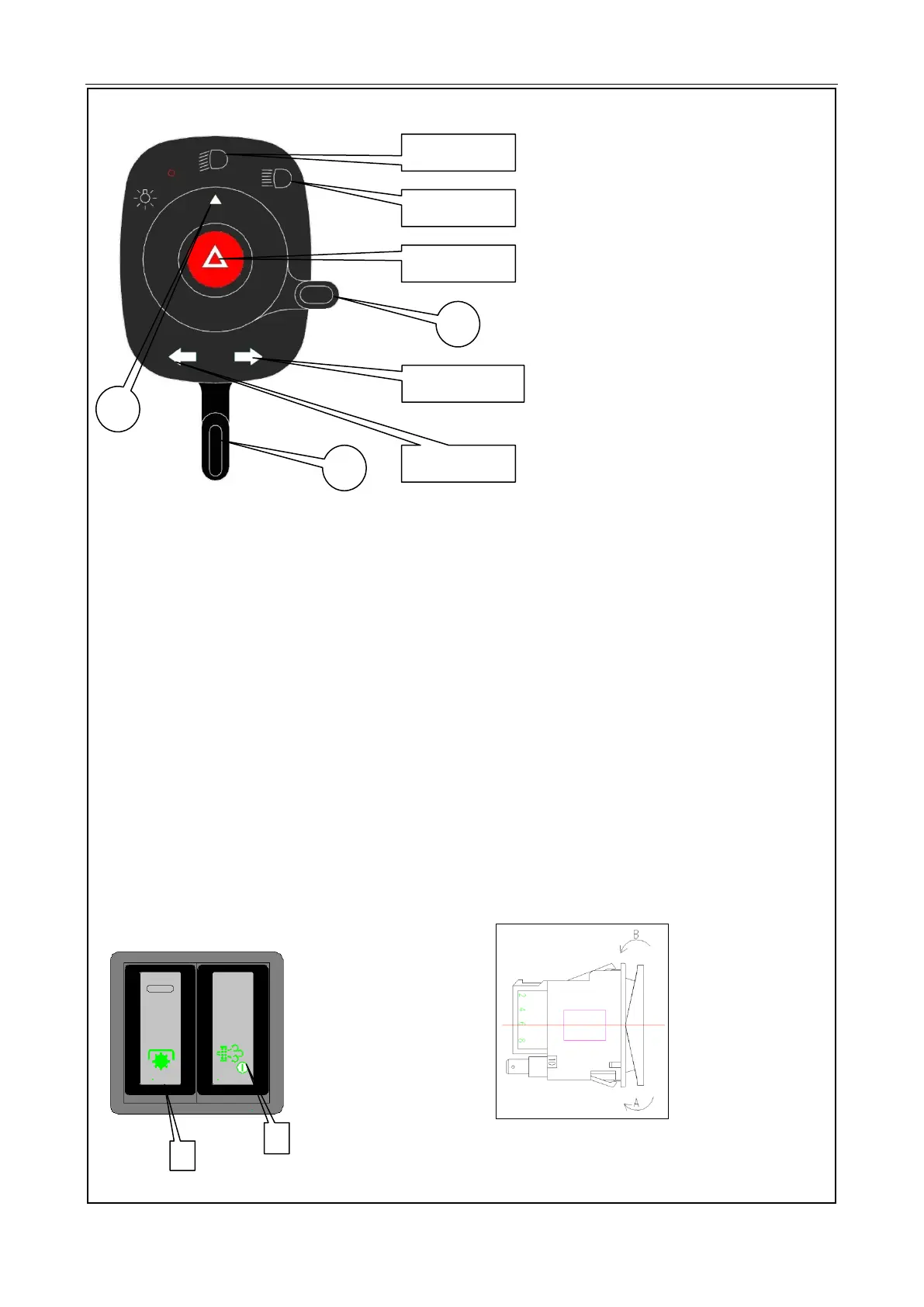 For example, in the position shown in the figure above, triangle B points to the low beam switch, and then