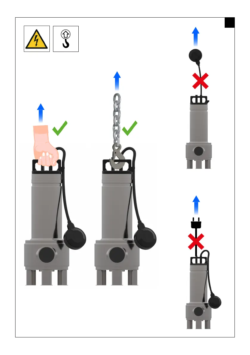 Lowara DOMO - Safe Lifting Procedures; Manual Lifting Technique; Chain and Hook Lifting; Prohibited Lifting Methods