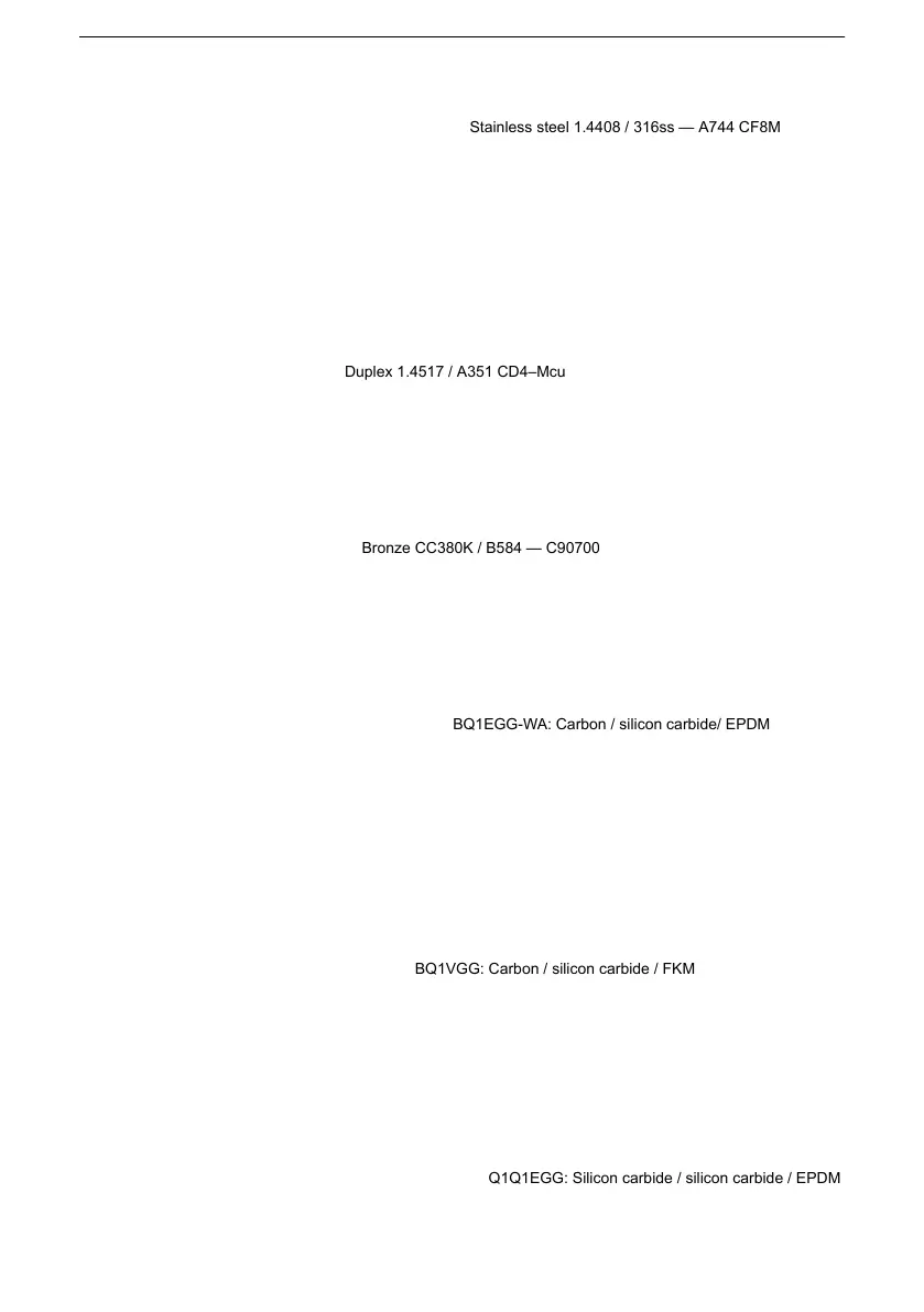 • BQ1VGG: Carbon / siliciumkarbid / FKM • BQ1VGG: Karbon / silikonkarbid / FKM • BQ1VGG: Kol/silikon-