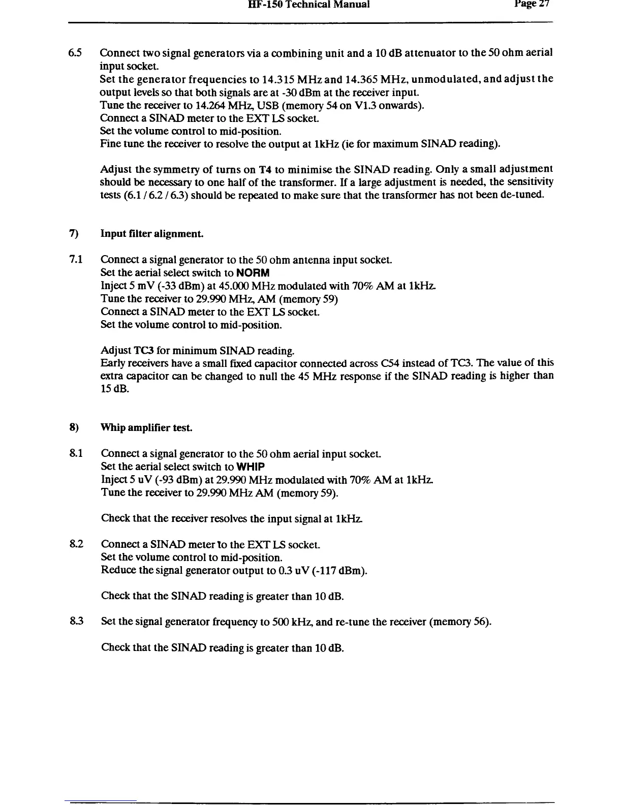 Lowe Electronics HF-150 - Input Filter Alignment; Whip Amplifier Test