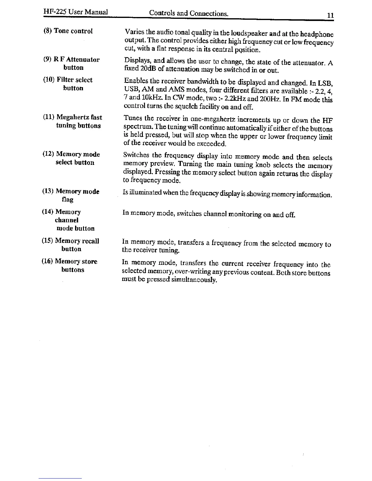 Lowe HF-225 - Tone control; RF Attenuator button; Filter select button; Megahertz fast tuning buttons