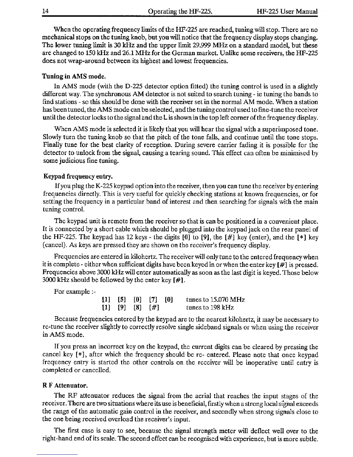 Lowe HF-225 - Tuning in AMS mode; Keypad frequency entry; RF Attenuator